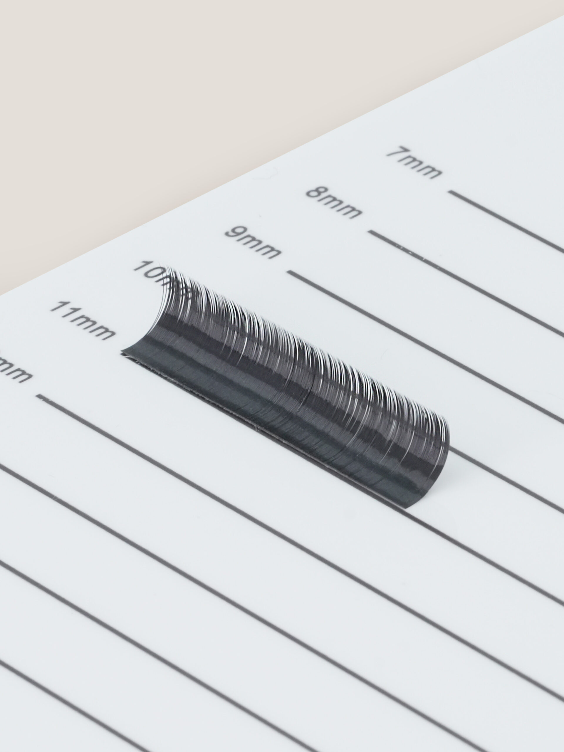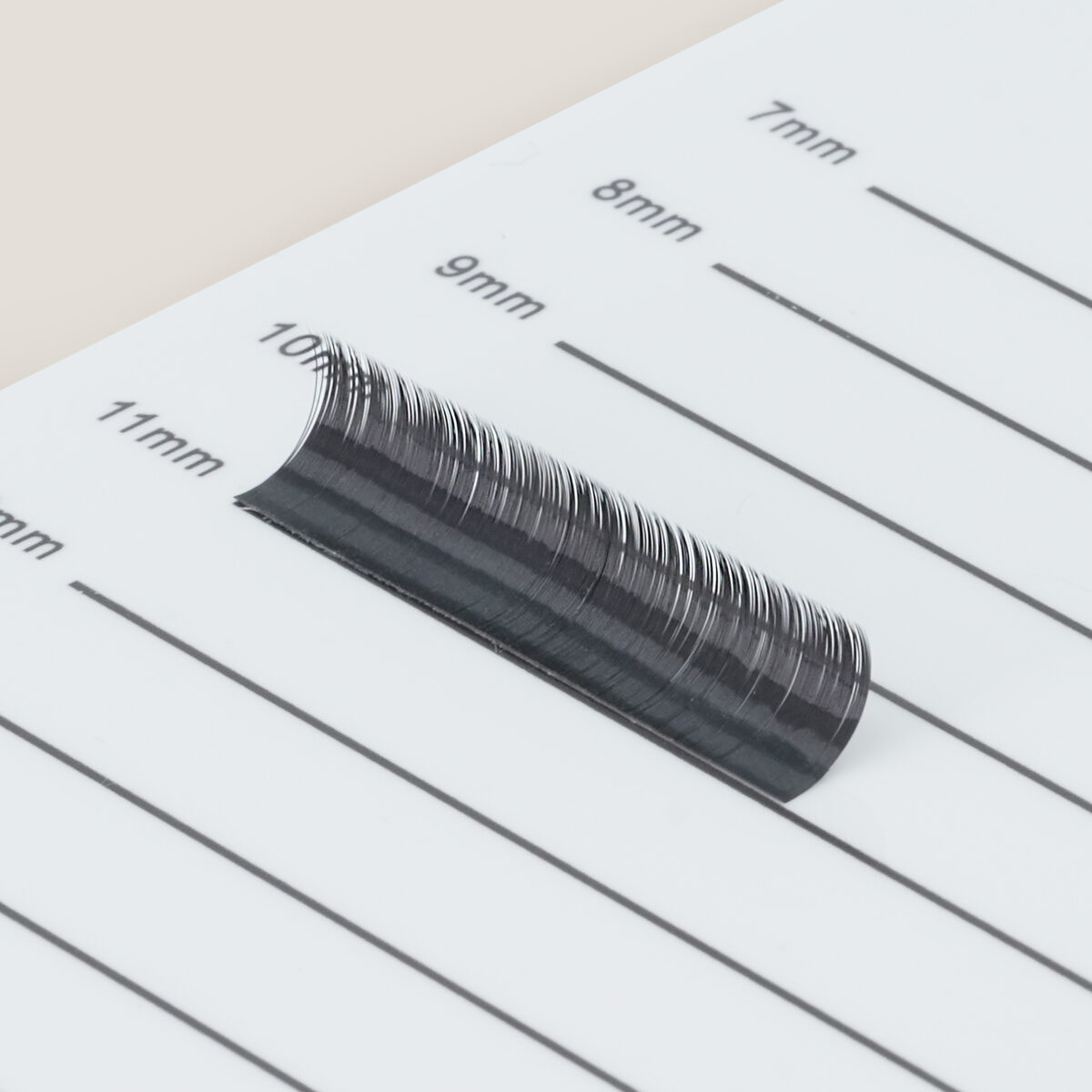 Fita Larga Preta de 3mm: Projetadas com uma faixa larga preta de 3mm, estas pestanas são ideais para técnicas que criam o leque diretamente na fita, oferecendo excelente visibilidade e aderência na base.