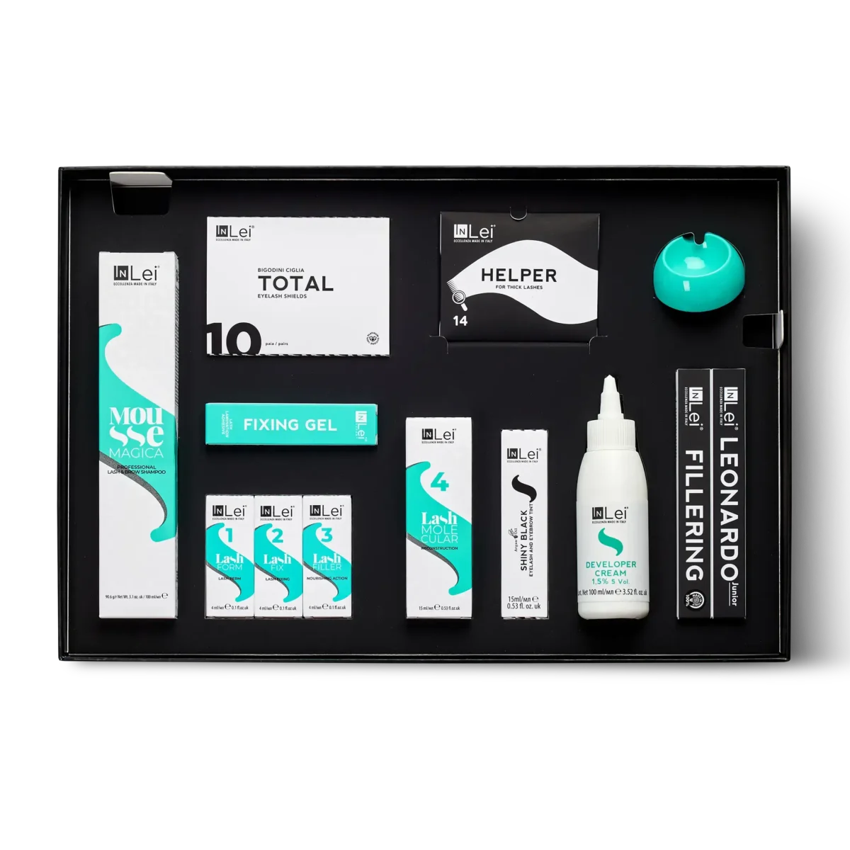 O Kit InLei® “LASH FILLER” é a sua solução profissional completa para um Lifting de Pestanas revolucionário. Produzido com alta tecnologia Made in Italy, este é o único tratamento no mundo clinicamente testado que garante um aumento médio de espessura de 24% nas pestanas naturais em apenas três sessões consecutivas.