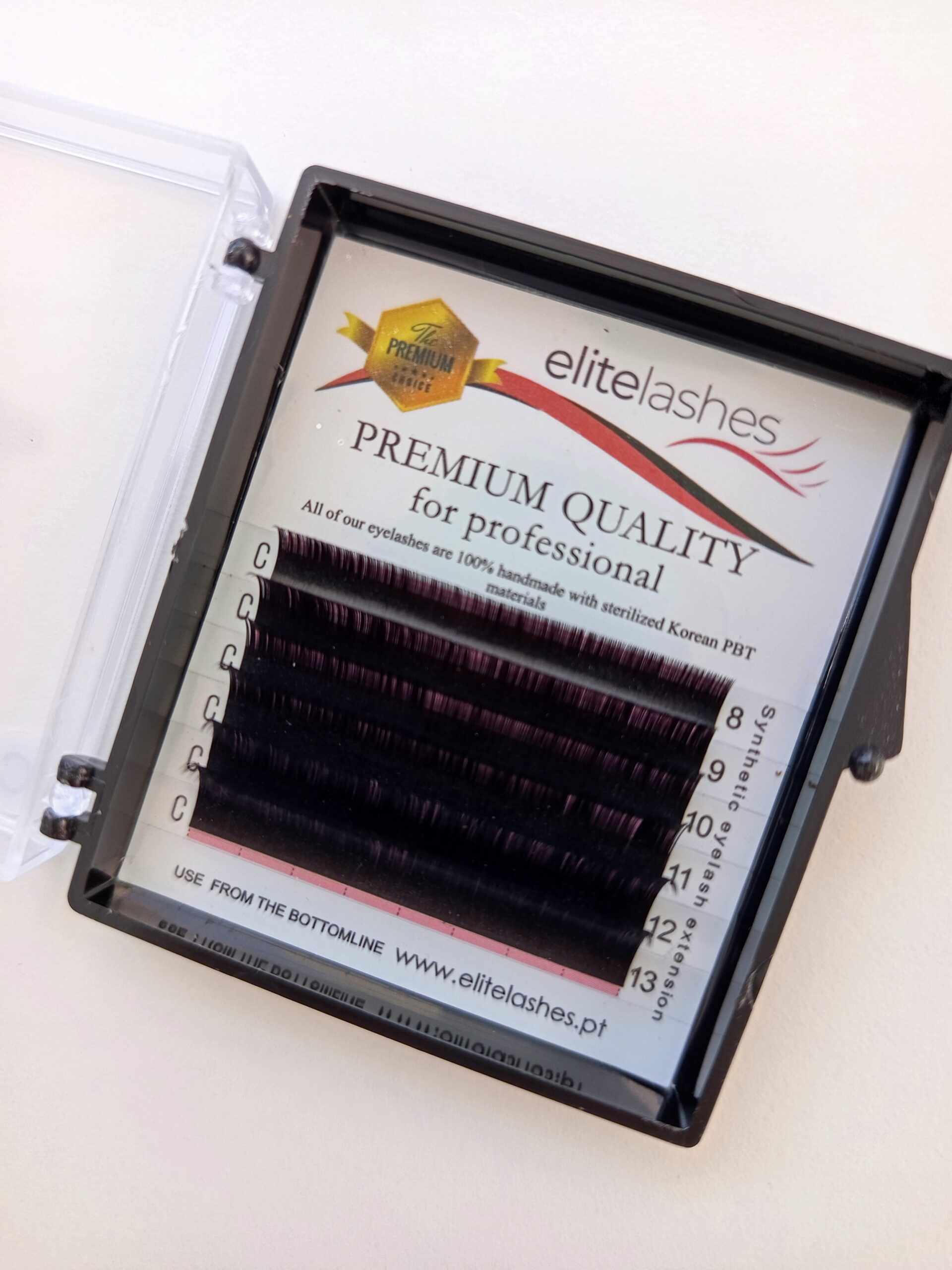 Fibras de Alta Qualidade: A Elitelashes utiliza apenas material premium, submetido a rigorosos controlos de qualidade para garantir a consistência perfeita na curvatura, espessura e comprimento. A saúde das pestanas naturais é sempre a prioridade.